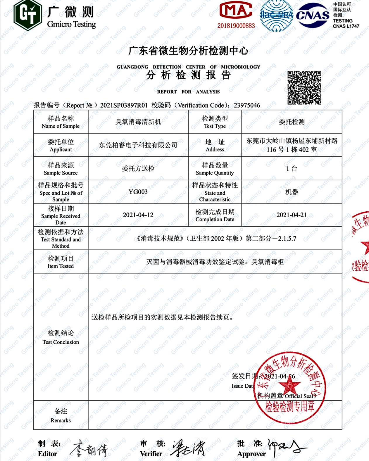 ОЗОНАТОР ИОНИЗАТОР PURE AIR 03−600MG это сертифицированный прибор, который прошел клинические испытания в центре микробиологии, а так же имеет сертификаты EAC, CE, ROHS.